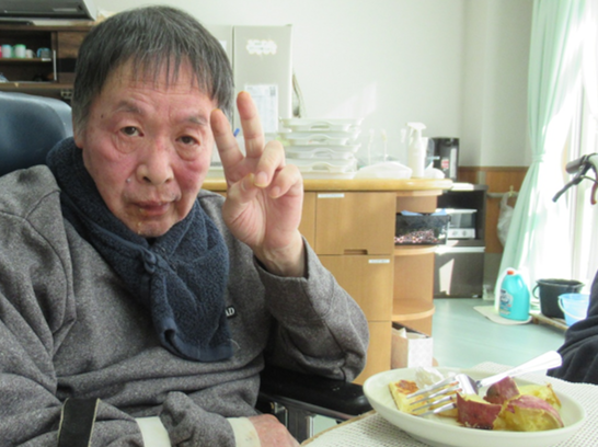 11月11日、利用者様の「食べたい!」というリクエストで、おやつに焼き芋とホットケーキを作りました。
