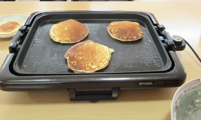 ホットケーキは混ぜたりひっくり返したりと利用者様と一緒に作りました。