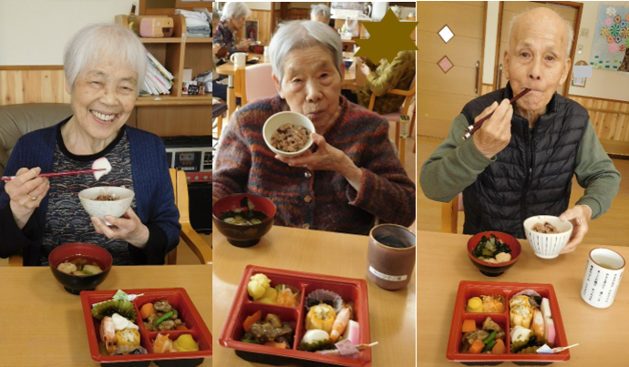 1月1日、グループホームでは、お昼ご飯におせち料理を用意しました。