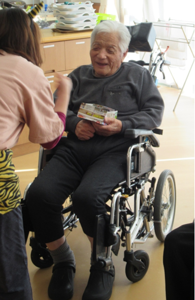 無病息災や幸福を願い、利用者様達はカゴに向かって元気よく豆を投げられ、「こういうのもたまにはええな」「次は当てるで」「当たった!」と笑顔で参加されました。