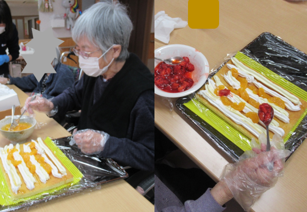 1月は、お誕生日の利用者様が多く、一緒にロールケーキを作ってお祝いをしました。