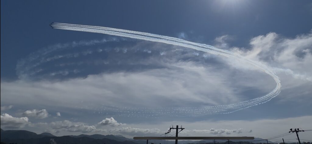 令和7年10月8日(水)に国スポの閉会式のために、ブルーインパルスが来てくださいました。